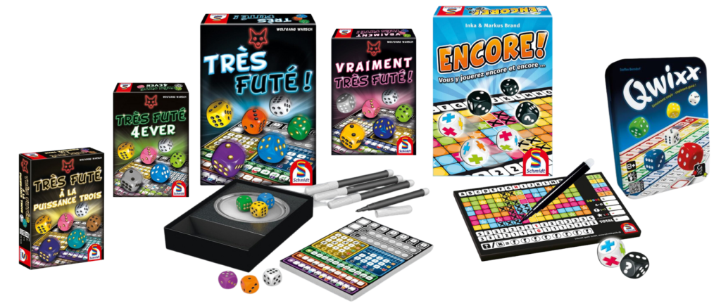 Des jeux de dés originaux ou chaque tirage mène à des choix stratégiques. Par ailleurs, avec le Encore et la gamme des Très Futé, vous pourrez aussi embêter l’autre et choisir des dés de manière que l’autre joueur ne puisse pas en profiter. NIAHAHA !