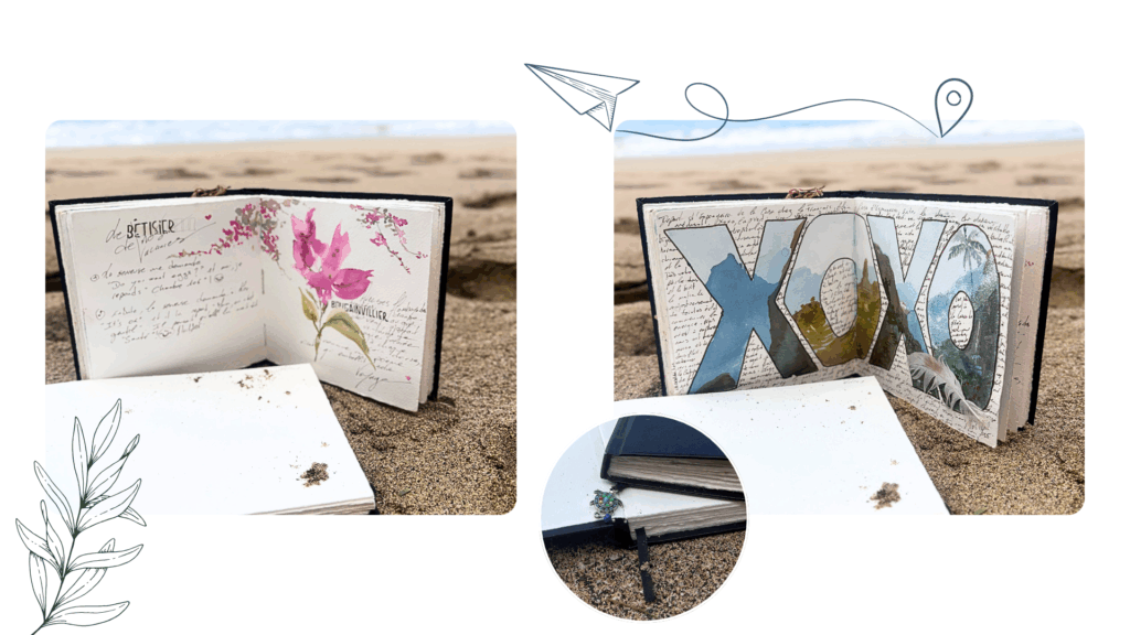 👉 Idées pour personnaliser le vôtre : un coquillage ramassé sur une plage, une perle, un mini galet, un bout de ruban, un bouton chiné… tout ce qui résonne avec vos voyages et donne une âme unique à votre carnet.