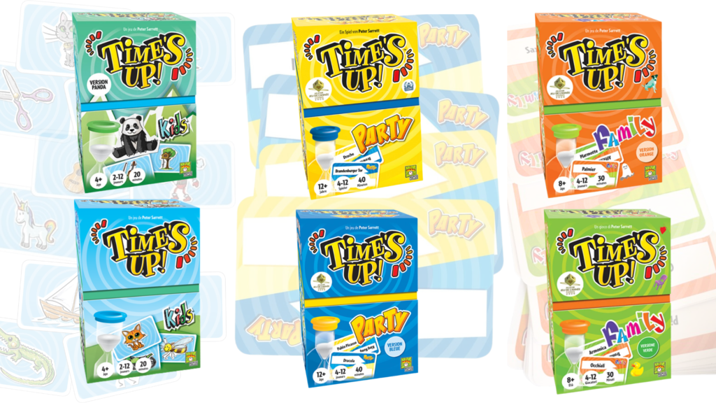 Impossible de parler de jeux de mimes sans évoquer ce monument des soirées.Le but : faire deviner un maximum de personnages à son équipe, ou de noms communs avec la version « Time’s Up Famille », avant la fin du sablier. Accessible dès 12 ans, pour 4 à 12 joueurs, avec des parties d’environ 40 minutes.