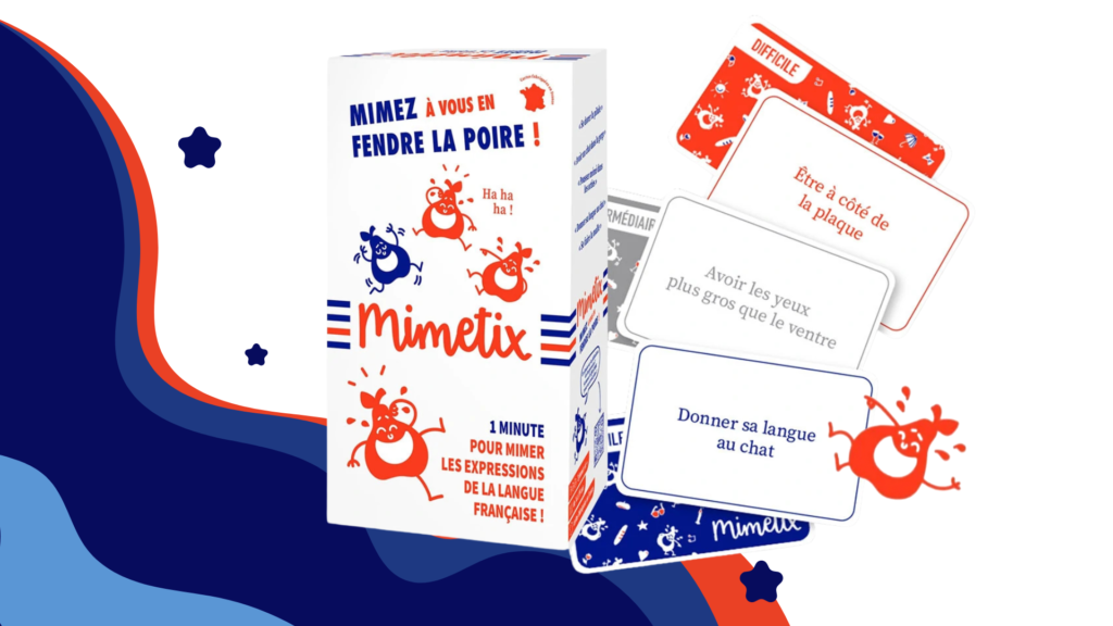 Mimetix est un jeu de mime accessible dès 3 joueurs, avec un principe simple : mimer des expressions françaises le plus vite possible.