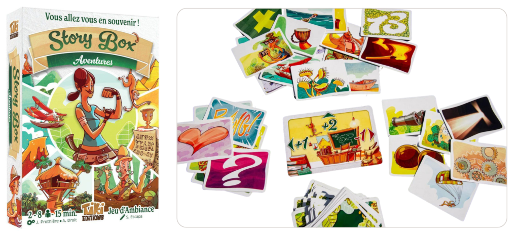 Pendant deux minutes, les joueurs vont inventer des histoires à partir d’illustrations variées et devront s’en souvenir une fois le temps écoulé. On pose des cartes de sa main sur lesquelles figurent un personnage, un objet ou une scène et, tour à tour, on rajoute ainsi des éléments à l’histoire collective.